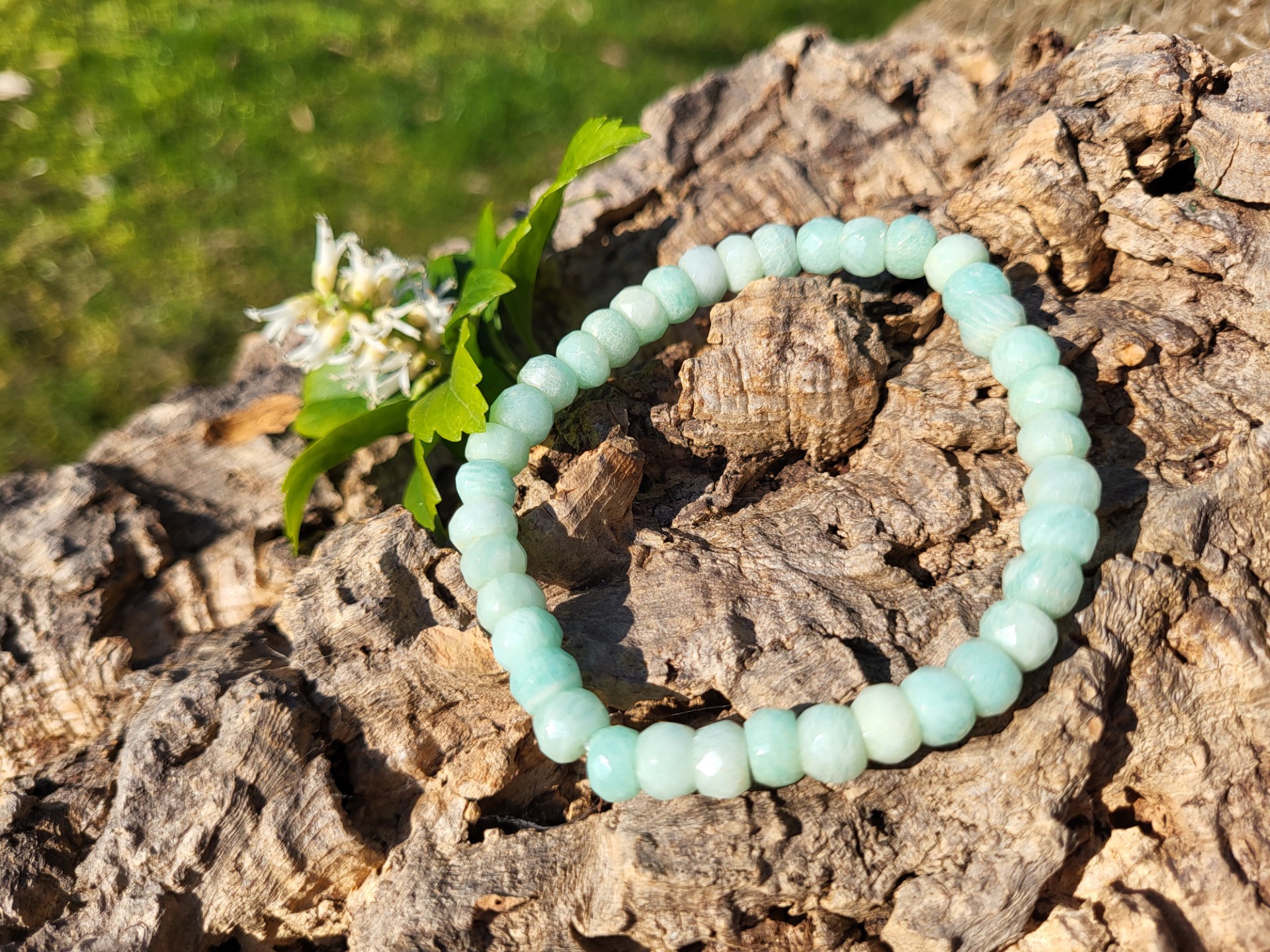 Amazoniet laat je op een zachte en lieve manier aan de situatie wennen. De steen omhuld je met liefde en zonnewarmte, hij leert je vanuit je hart te leven en niet vanuit je hoofd. Hij maakt doelbewust, geeft inzicht en daadkracht en brengt de mannelijke en vrouwelijke energieën met elkaar in evenwicht. Hij kalmeert de hersenen en het zenuwstelsel en harmoniseert het fysieke lichaam met het etherische, waardoor een optimale gezondheid wordt verkregen. Amazoniet blokkeert geopathische belasting en absorbeert alle vormen van straling. Hij beschermt ook tegen negativiteit van buitenaf. Deze steen heelt en opent het hart- en keelchakra en versterkt een liefdevolle communicatie, hij opent ook het derde oog. Amazoniet helpt bij botontkalking, tandbederf, spierkrampen en als elixer lost het calciumproblemen op. Huidproblemen, zoals eczeem of onverklaarbare jeuk kun je met het water deppen.